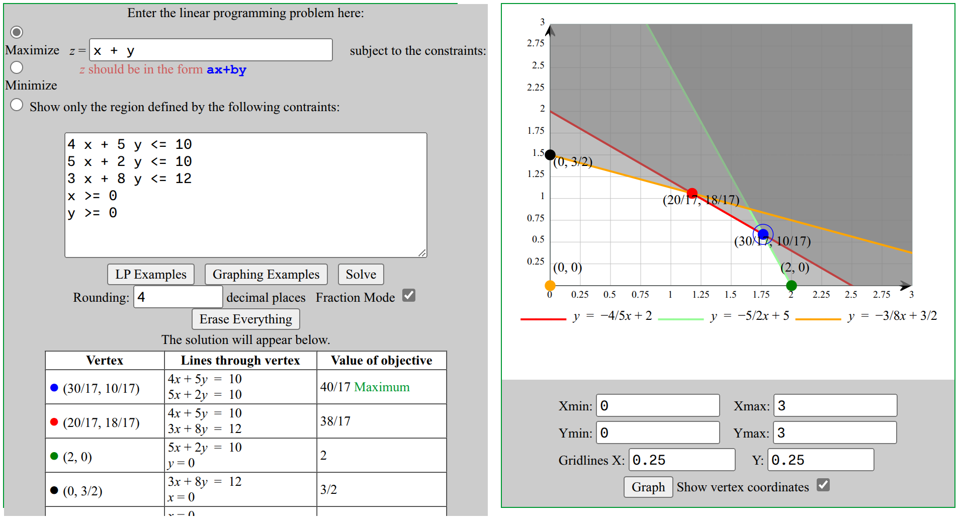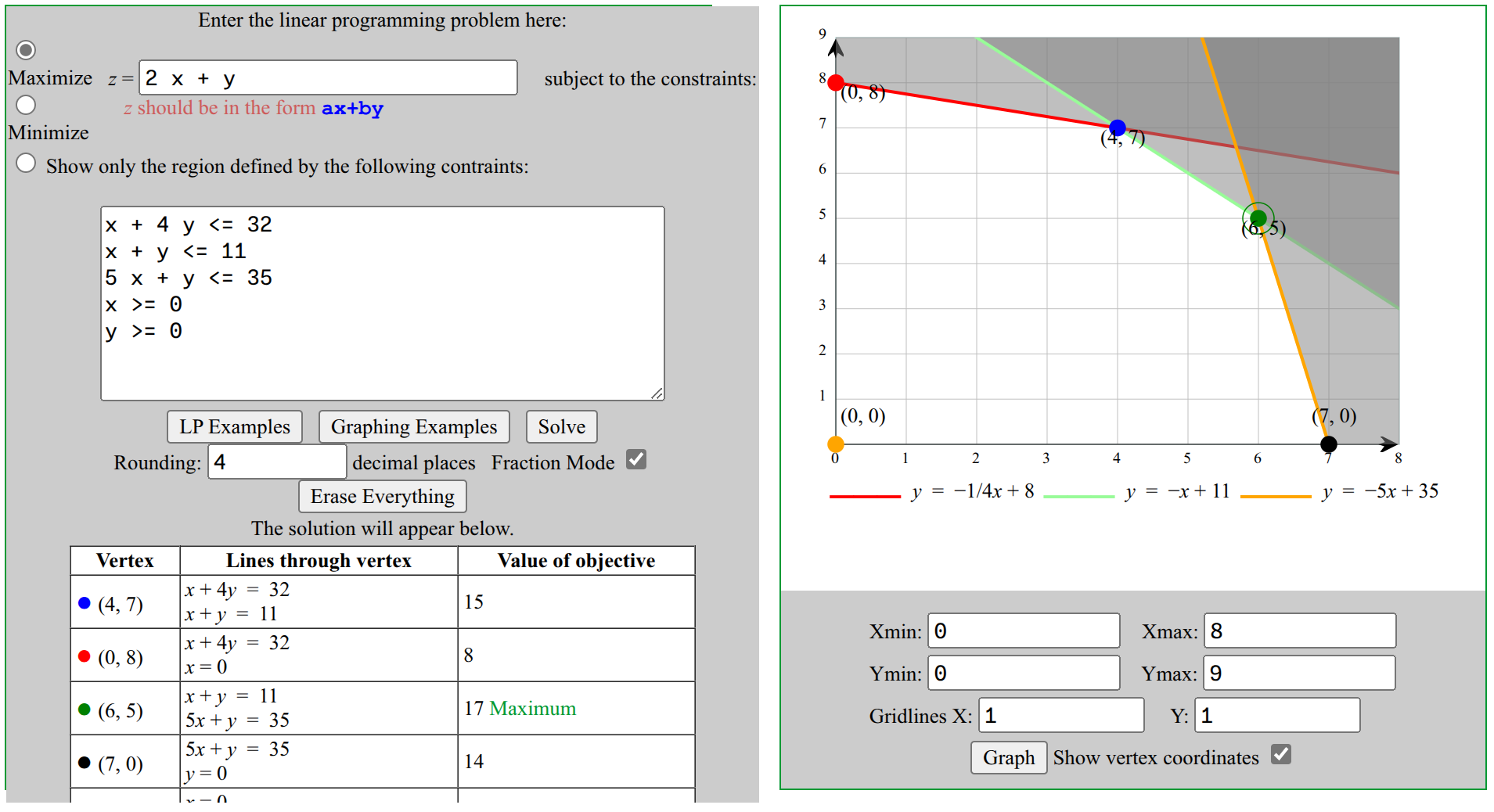 Images generated by: [Linear programming grapher (two variables)](https: <//www.zweigmedia.com/utilities/lpg/index.html>)